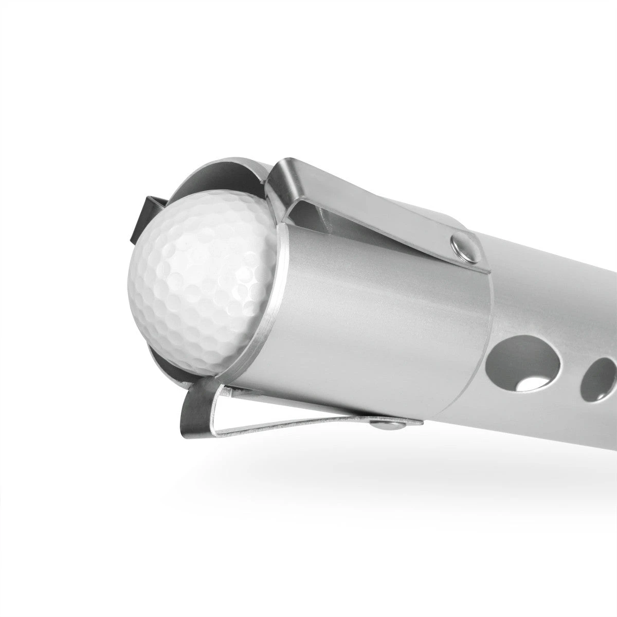 The spring clips on the aluminum tube grabs the balls and the sleeve holds them in place so they will not fall out.