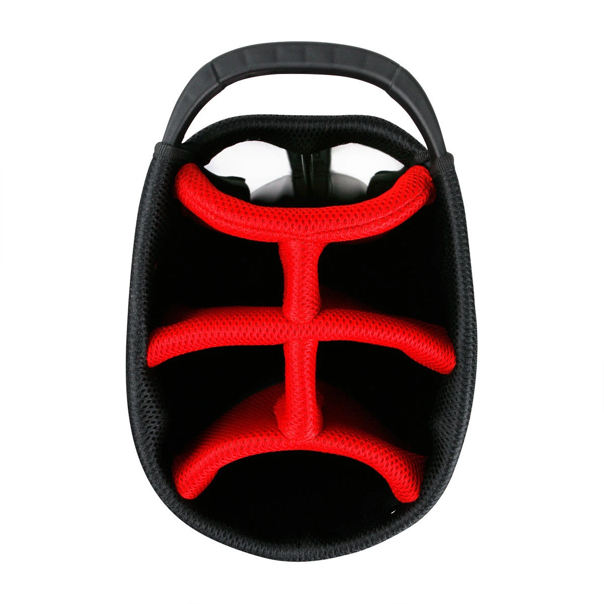 The Orlimar Mach 1 golf stand bag features a 7.5-inch, 6-way graphite friendly separator top and 4 full length dividers, Convenient top and bottom lift handles, 6 zippered pockets including a velour lined valuables pocket and an insulated pocket for cold / hot drinks, Padded double carry strap and hip pad, umbrella holder, rain hood cover and towel ring, Easy release, tempered stand legs, Velcro strap closure secures stand legs when not in use and Constructed from light weight dobby nylon materials.